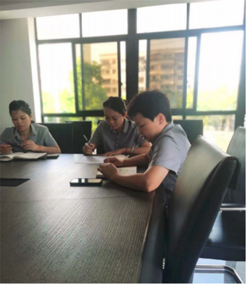 月余說我們應該不安于現狀,打開視野和格局,提升自己的學習能力。云靜說公司在進步,我們要學習才不會被公司淘汰。仁琴說質量是企業的生命,我們要產品質量。愛霞說我們要活到老學到老,積極參加學習。遠英說學習讓她學會冷靜,讓自己更適應團隊的工作。王凡說企業讓我們共同進步,我們要學會感恩。麗君說不停止學習才能讓自己成為企業不可替代的那個人。培紅組長說領導的情緒關乎團隊的熱情,領導也要學習變得更好。